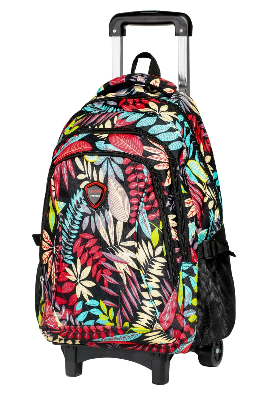 Aoking Rucsac Negru Cu Model Frunze Colorate Pe Roți Dimensiuni 47*32*21cm