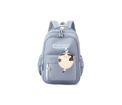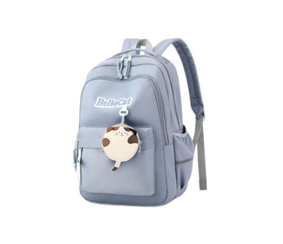 Rucsac Școală Cu Compartimente Multiple Impermeabil Albastru Deschis Cu Breloc Inclus 44*28*14cm